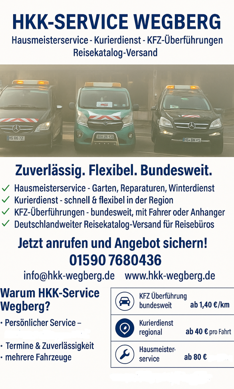 HKK Service Wegberg ist Ihr vertrauenswürdiger Partner für Courier- und Janitorial-Dienste in Wegberg. Wir legen Wert auf Zuverlässigkeit und Flexibilität, um Ihren Bedürfnissen gerecht zu werden. Mit umfangreicher Erfahrung und einem engagierten Team sind wir für Sie da.